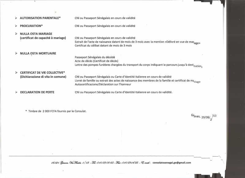 1-il n’y a pas lieu d’attendre le mois d’AOUT de chaque année pour se rendre au Consulat qui, il faut le rappeler, est ouvert tout au long de l’année sauf les jours fériés sénégalais et italiens ;